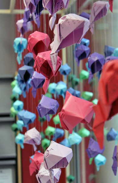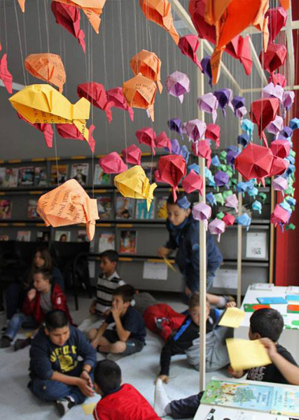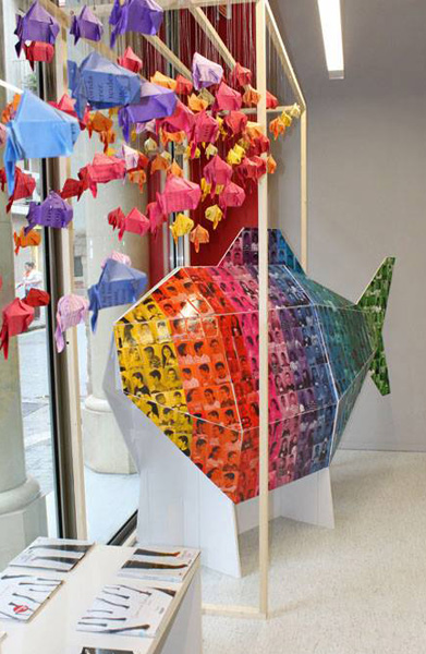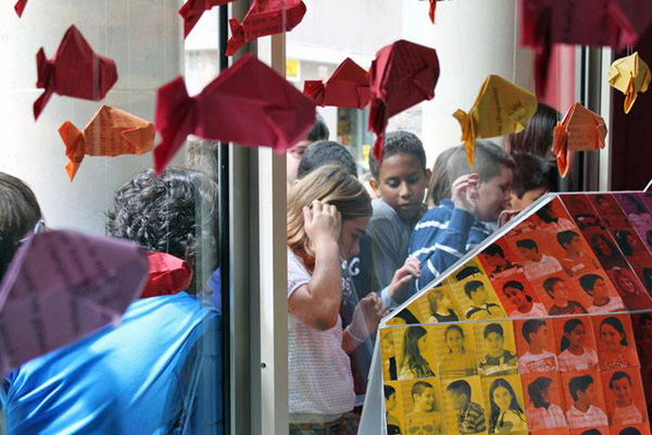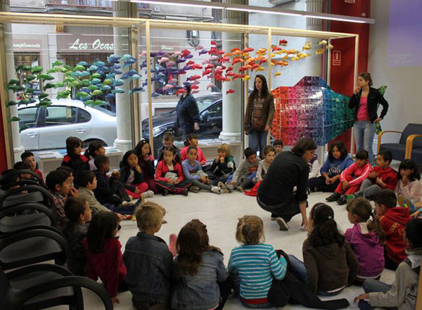 Escaparate en la biblioteca pública Barceloneta-La Fraternitat (Barcelona) para el programa 'Llegir x Llegir', ciclo de lectura con los niños de las escuelas del barrio (2013).